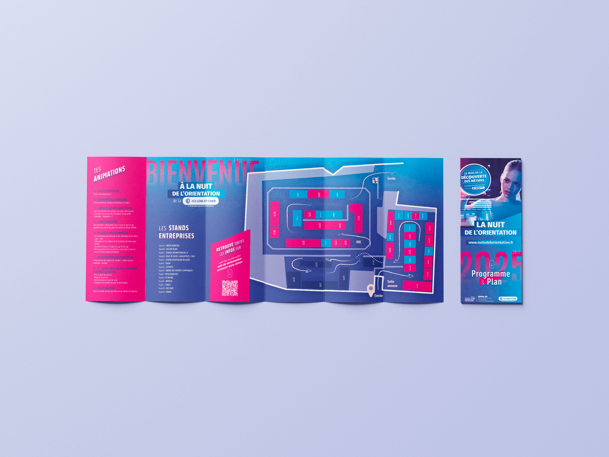 L’orientation, c’est aussi savoir se situer, donc avec Christelle Saupin, nous avons conçu un document simple et efficace, mais aussi inclusif dans sa rédaction. Parce que l’avenir professionnel ne connaît pas de genre. Nous utilisons le point médian (visiteur·euse·s) pour nous adresser à tous·tes et un langage non genré (femme/homme/non binaire) pour refléter la diversité de notre cible. C’est une grande fierté d’avoir œuvré en ce sens pour la CCI Loir-et-Cher et ainsi de parler le même langage que les personnes qui forgent notre avenir !